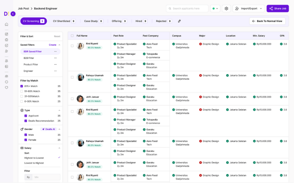Data ini membantu HR dalam menyeleksi kandidat terbaik, memastikan proses hiring berjalan objektif, serta menyimpan riwayat seleksi untuk kebutuhan evaluasi di masa depan.